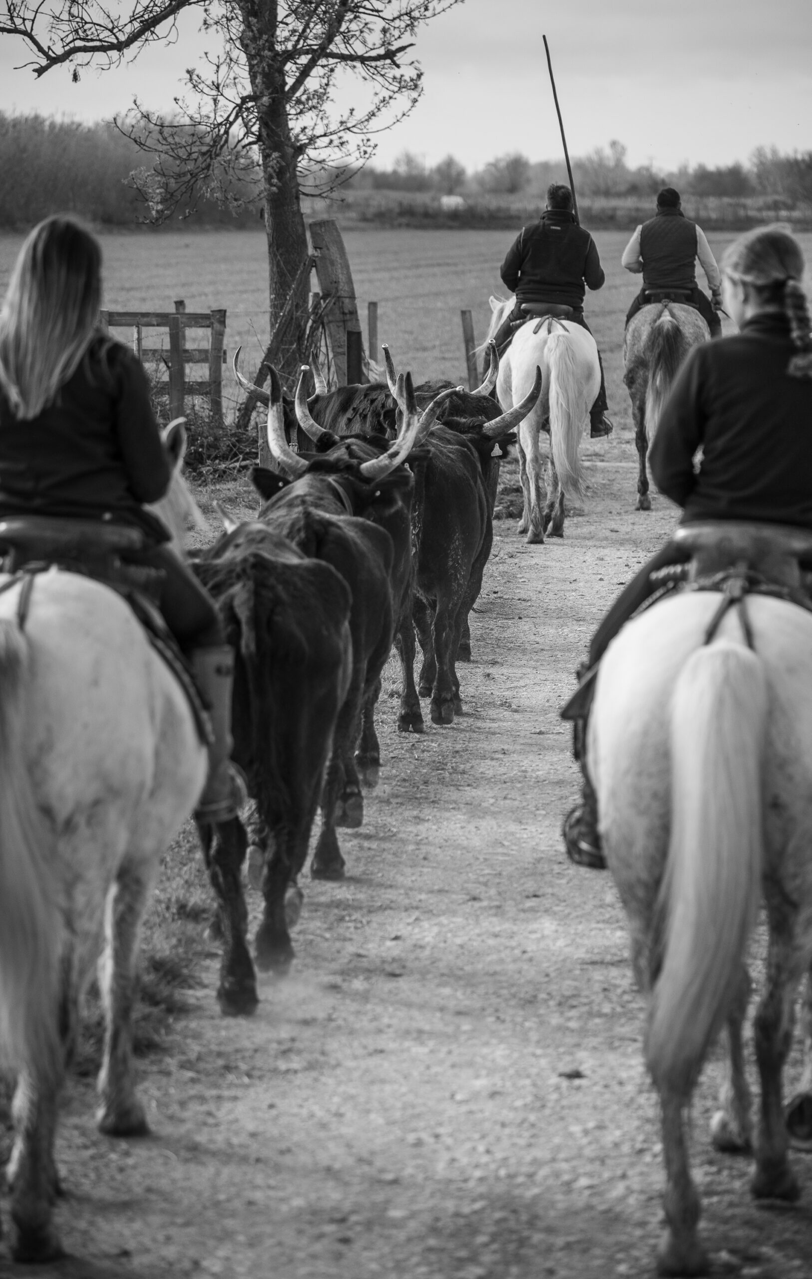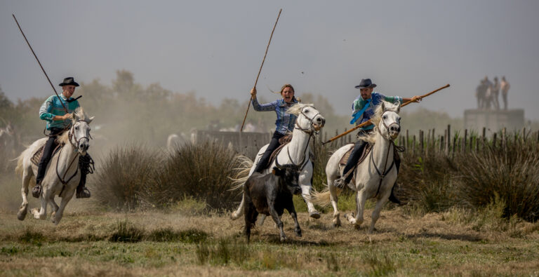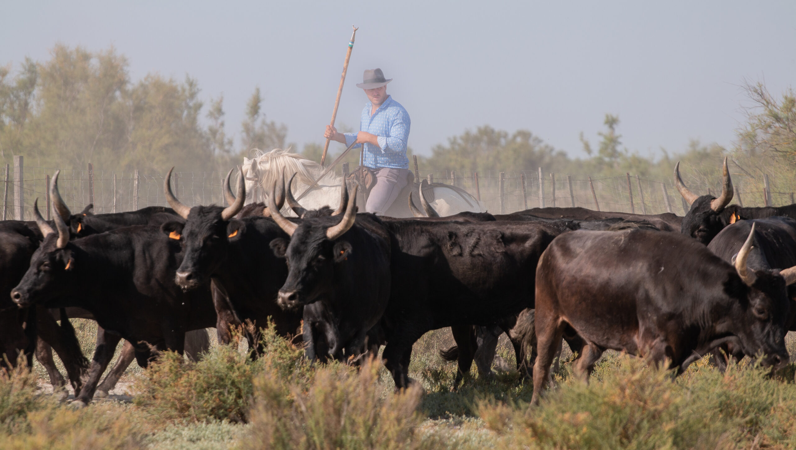 Le manadier dans son troupeau de taureaux Camargue